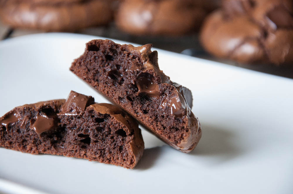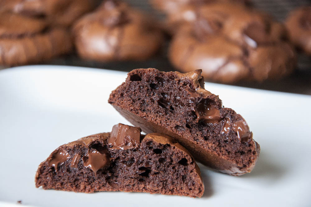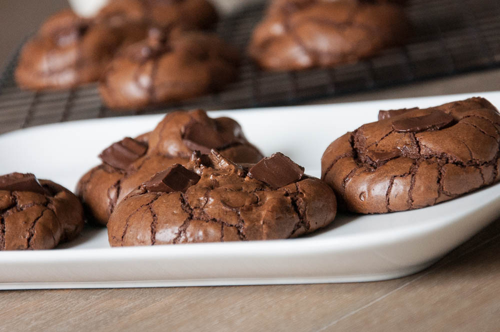 Vous aimez les cookies ? Vous aimez les brownies ? Vous allez adorer cette recette ! Des cookies tout chocolat moelleux et fondants comme un brownie, je vous jure … Une TUUUEEERRRIIIEEE !!! Et en plus, c’est vite fait … Que demander de plus ? J’ai déjà fait cette recette à de nombreuses reprises et elle a toujours eu un succès fou !